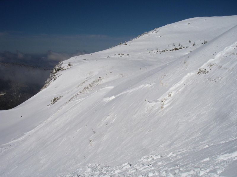 gros travail et transport du vent au dessus de 1500 sur les faces exposées au vent du Nord.