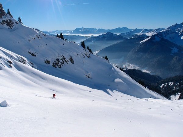 La quantité de neige n'est pas suffisante pour se lâcher, mais nous avons quand même profité de quelques sections en bonne poudre avec des mines bien apparentes et donc évitables. Les skis cailloux sont bien recommandés.