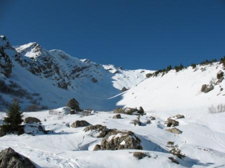 Les versants N sont encore froids, en dessous de 2000 m, la sous couche ne casse pas au passage d'un skieur, à la limite du béton. Les versants sud sont en neige de printemps et fortement déneigés en dessous de 2000, notamment dans les pentes raides. Néanmoins, la limite skiable est correcte de Prétarié au départ jusqu'au lac des Plagnes.