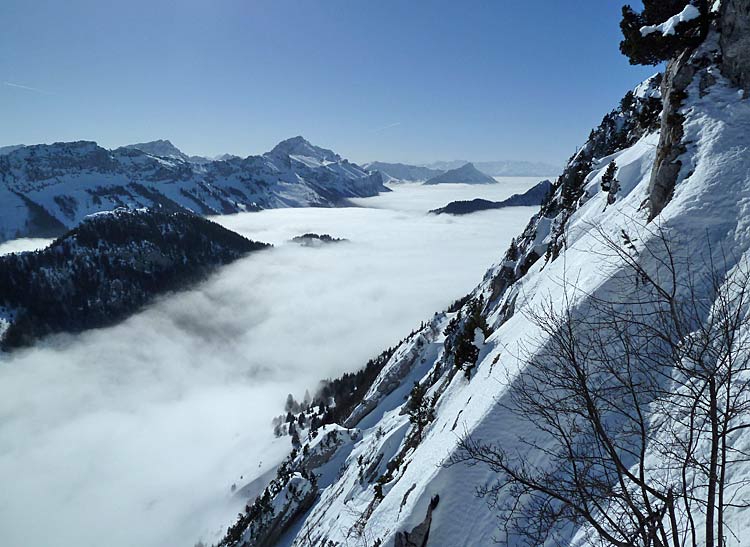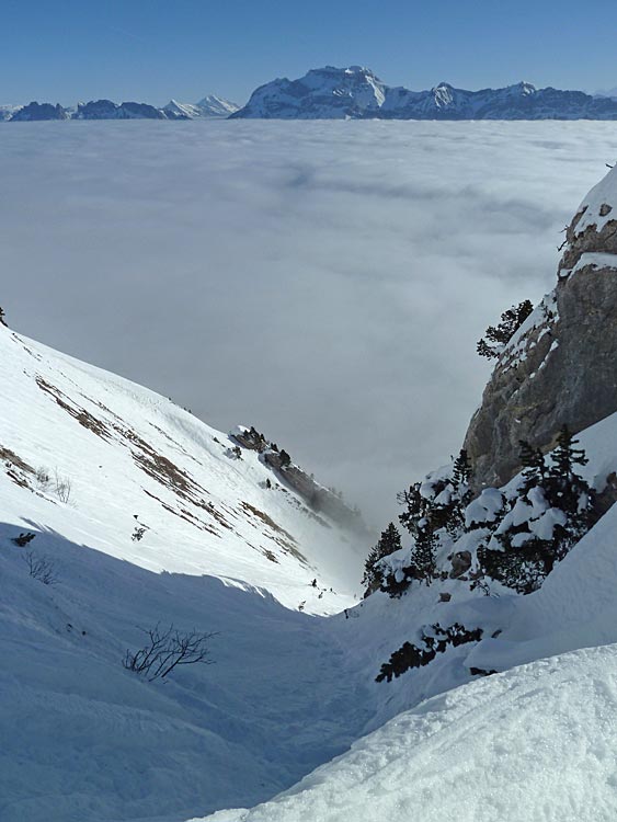 La mer de nuage annoncée un poil plus bas aurait pu corser l'affaire mais sitôt passé le petit couloir du bas, gros soleil et ambiance terrible!!