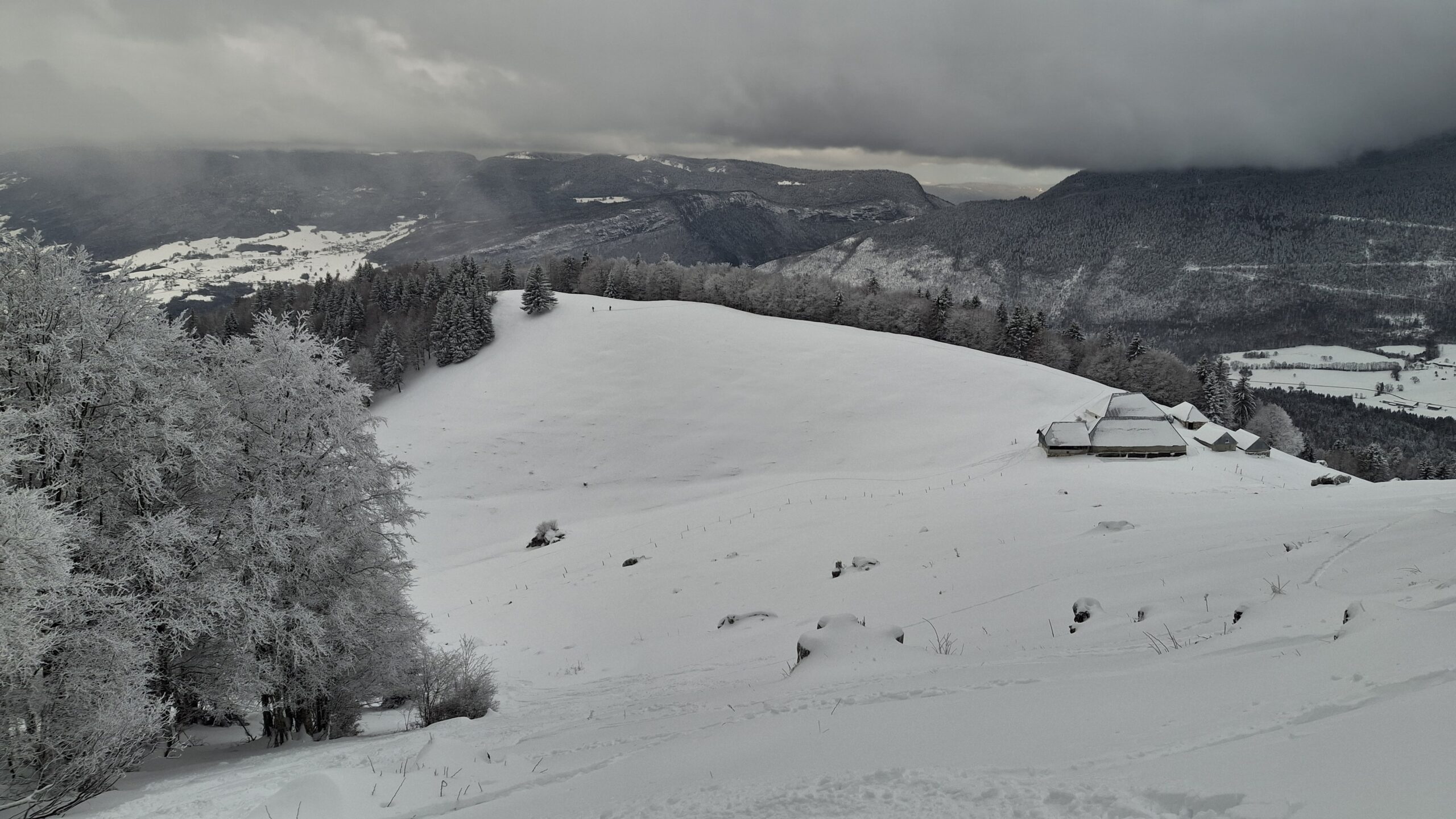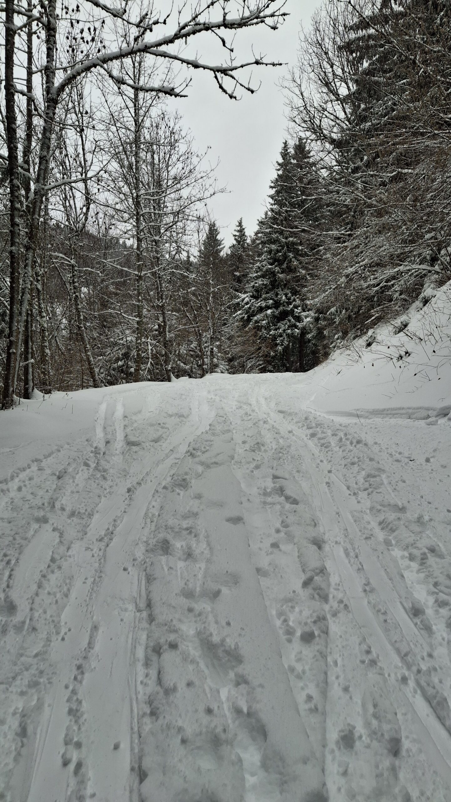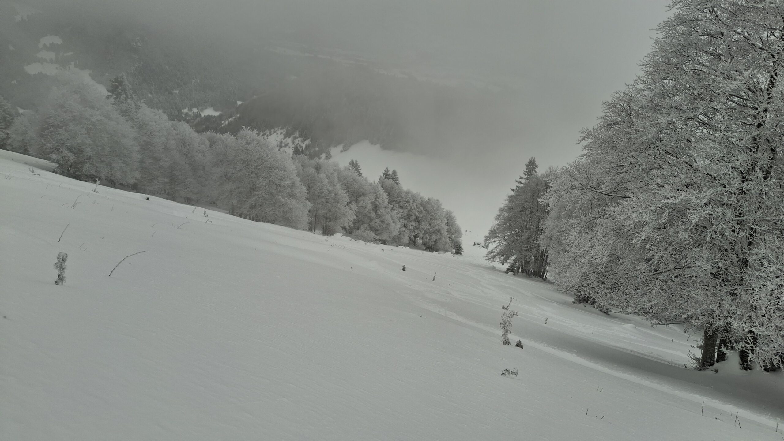 En haut (1650/1700) on est entre 60 à 80 cm d’épaisseur, avec les 30 cm de la chute de la journée du 10/01, sur un niveau qui a vu la pluie puis de rares zones où la neige de fin novembre avait résisté.