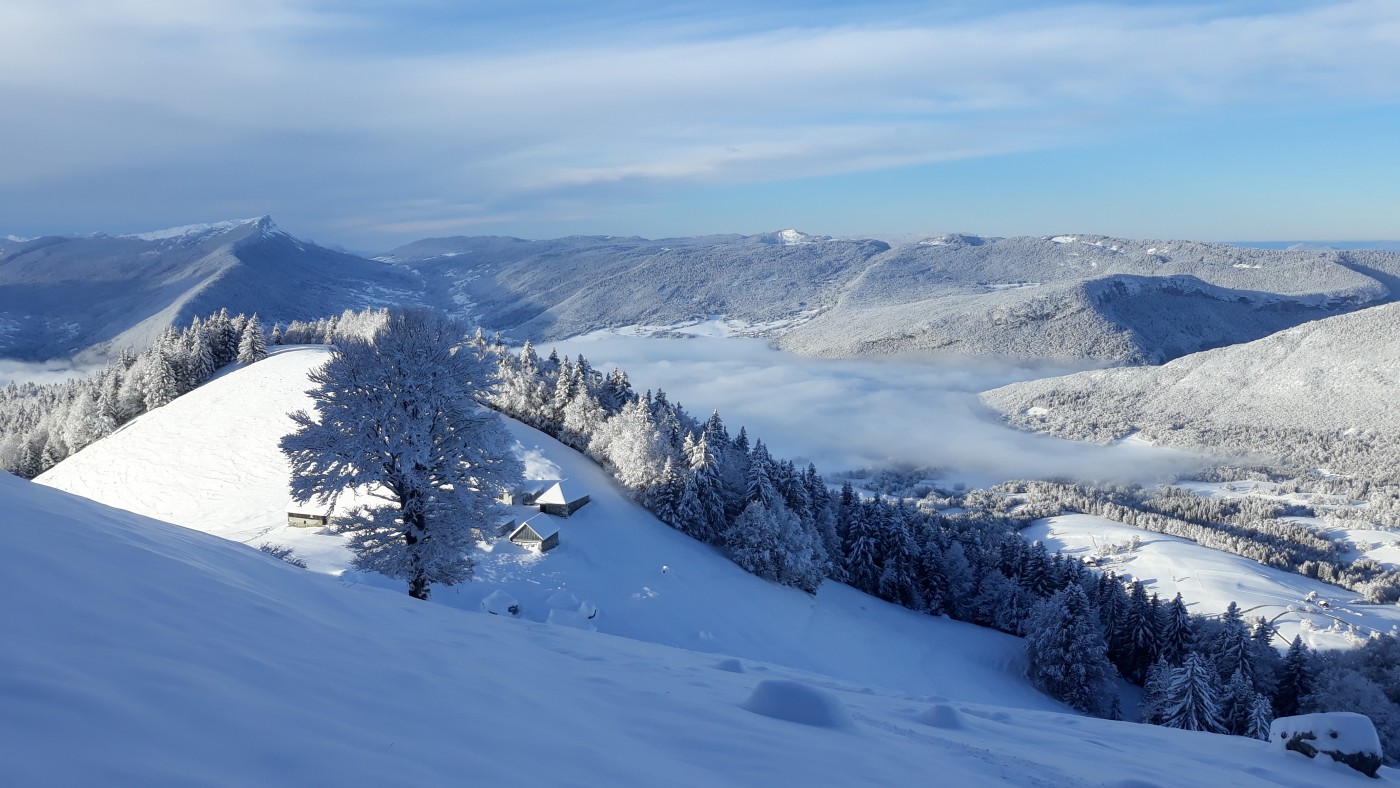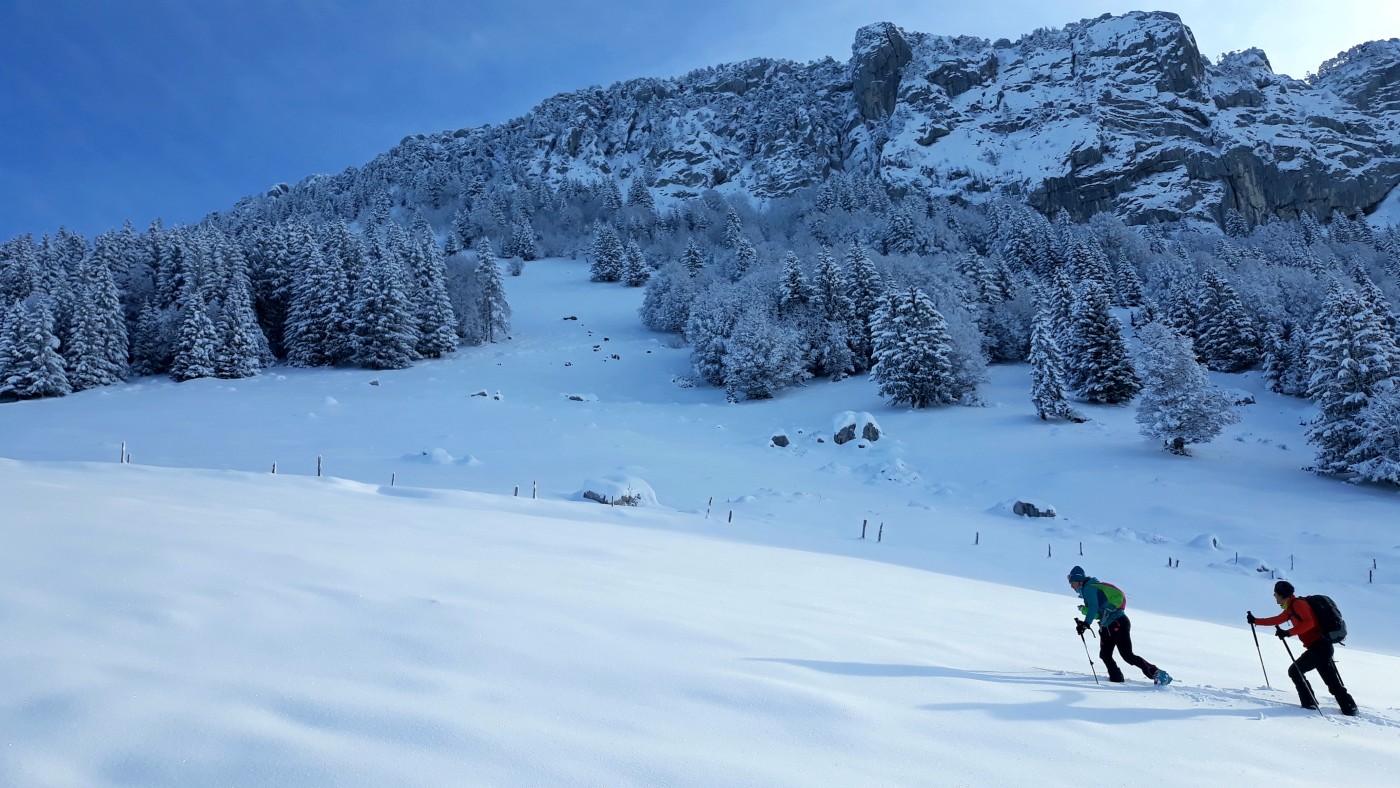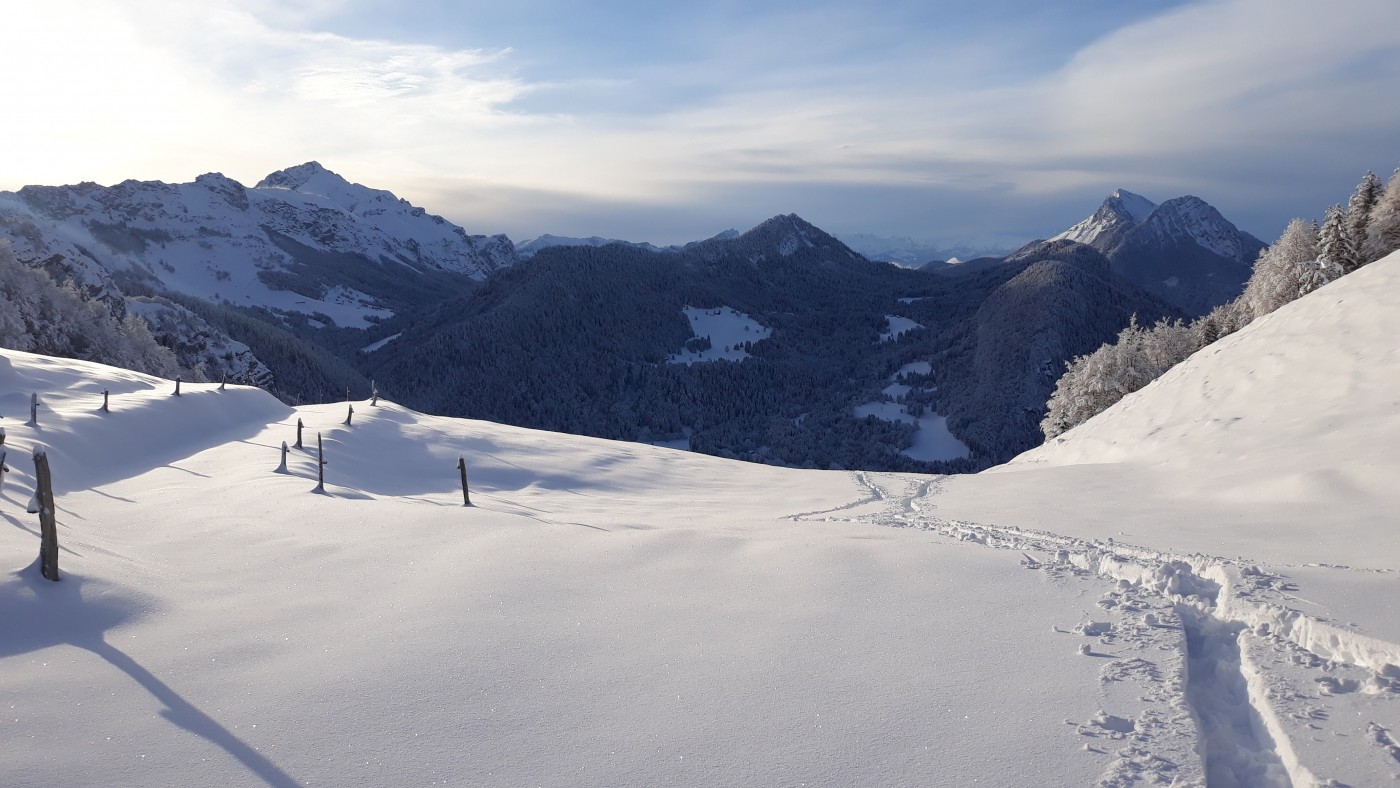 Retour poudreux dans les bauges, pour le plus grand plaisir des yeux et des spatules. Ski tres correct sauf en s'approchant de la crête où c'est encore trop peu pour le sol caillouteux.