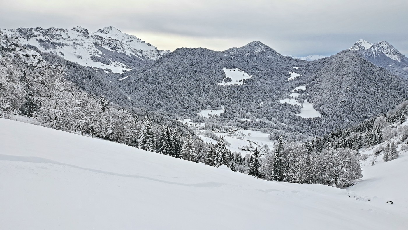Une belle chute qui a enfin apporté un aspect hivernal aux Bauges. Pas loin de 35 vers 1000m ici.