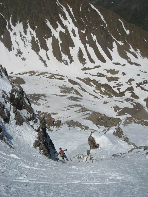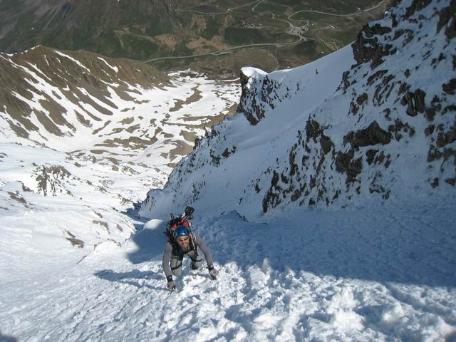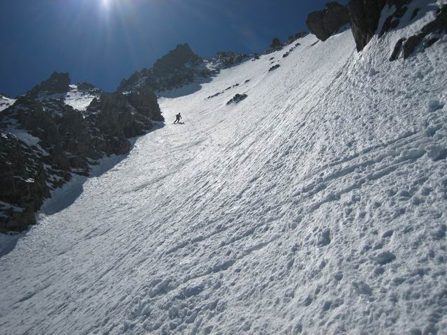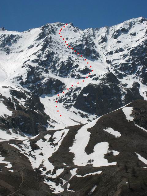 montée par le grand couloir N [->skié] en 2003, traversée péteuse jusqu'au point 3073, descente face N après repérage en montant. 4.3/E3