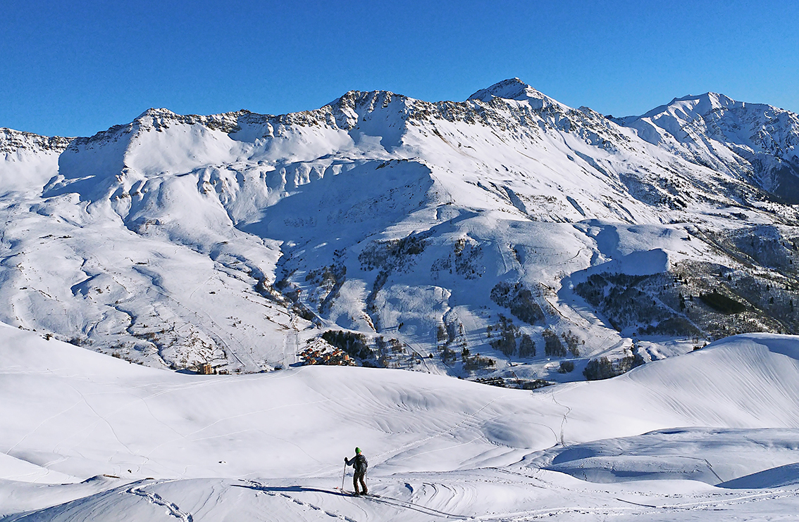 Grand rassemblement des amis de Clarisse qui ne pouvait trouver de meilleures conditions pour fêter son 50ème anniversaire. La championne de trail se met au ski de rando et à la montée on a juste le temps de sentir le souffle provoqué par son passage. A la descente, ne comptant à son actif que quatre journées de ski de piste, la progression ne saurait tarder. Un grand moment de partage vécu au chalet du lac de la Grande Léchère.