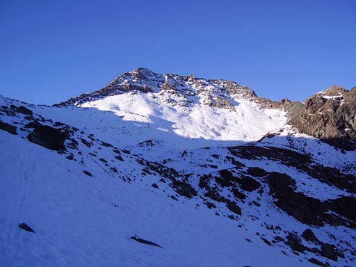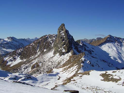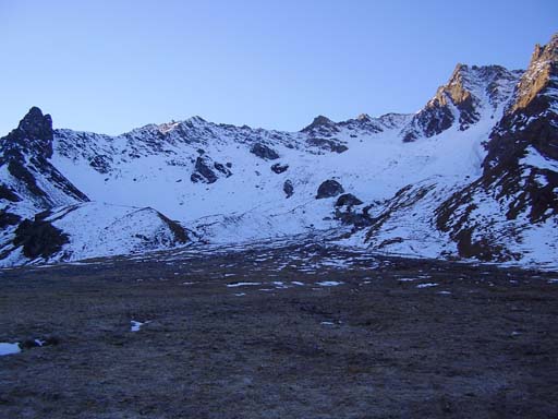 Je crois avoir skié ce jour tout ce qui était skiable dans le secteur, ou peu s?en faut? Le versant est du col Blanchet est trop déplumé pour envisager le tour des Toillies. Vers Caramantran, on trouve des bandes de neige vers 2700 m. Concernant le petit couloir menant à la crête de Coq, on est un point en-dessous du couloir nord débouchant au point 3159 : au pif, 40° sur 100-150 m, cotation dans les 4.1, E2, PD. Il était très bon à skier, petite poudre sur croûte béton, mais aussi quelques cailloux et boules glacées enfouies. J?ai dû chausser deux ou trois mètres sous la crête à cause du manque de neige et des cailloux. Toutes mes descentes étaient en délicieuse poudreuse posée sur une croûte dure, à l?exception de la crête de Blanchet, bien sûr, en bonne transfo à 11 h. Presque rien touché comme cailloux, en étant attentif en bas.