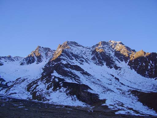 Je n?ai pas ausculté le manteau, mais j?ai constaté la présence de givre sous la croûte dans la partie finale de la pente menant à environ 3100 m sur la crête de Coq. Ailleurs, la croûte de surface est bien solide et portante et le tassement a fait son ?uvre au moins dans les couches supérieures. Aucune nivologie pour les versants sud, et pour cause?