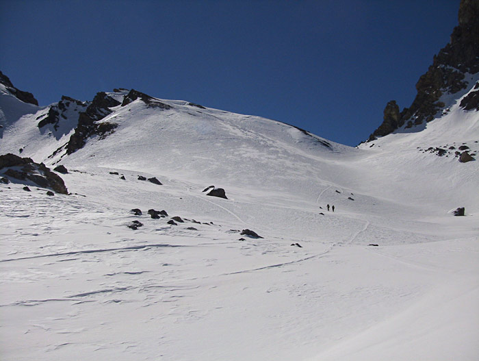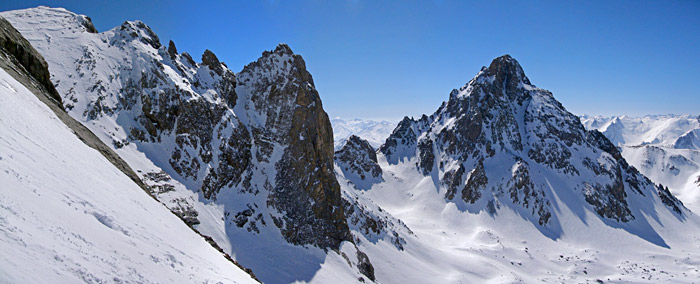 De Fouillouse, Rocca Blanca par le col du Vallonet et la face sud ouest, descente dans le couloir direct un peu plus sud, remontée au pas du Valounas descente par le court versant est (rocheux en haut) puis traversée sous Rocca Blanca avant de remonter au Col de Stroppia pour rentrer sur Fouillouse par son versant ouest.