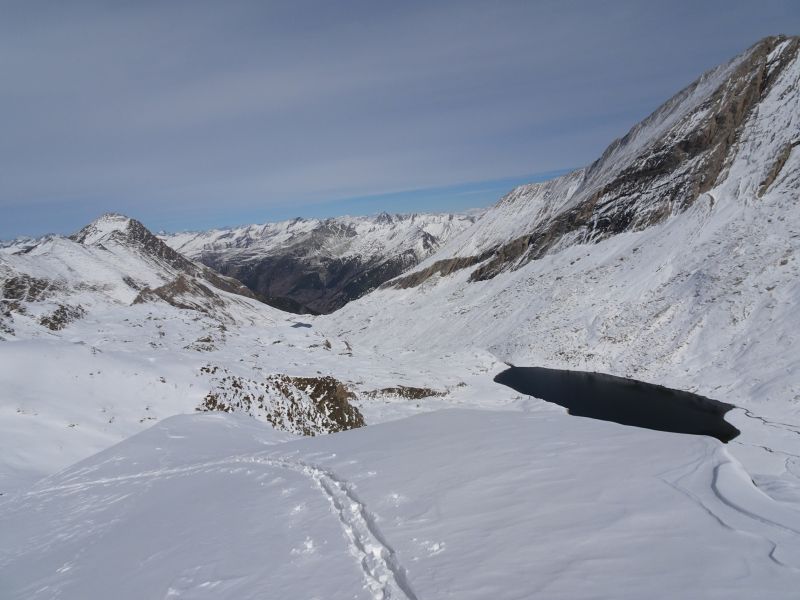 F12 et F8.3 Montée à Rocca Rossa But vers 3100 plaque descente sur Ruine puis lac Foréant remontée pointe 2968 de l'Eychassier par écharpe nord ; descente couloir sud pour trouver la transfo. Bon ski poudreux en nord mais beaucoup de pièges sous 2800. Neige rare mais moins de pièges sur la transfo en sud