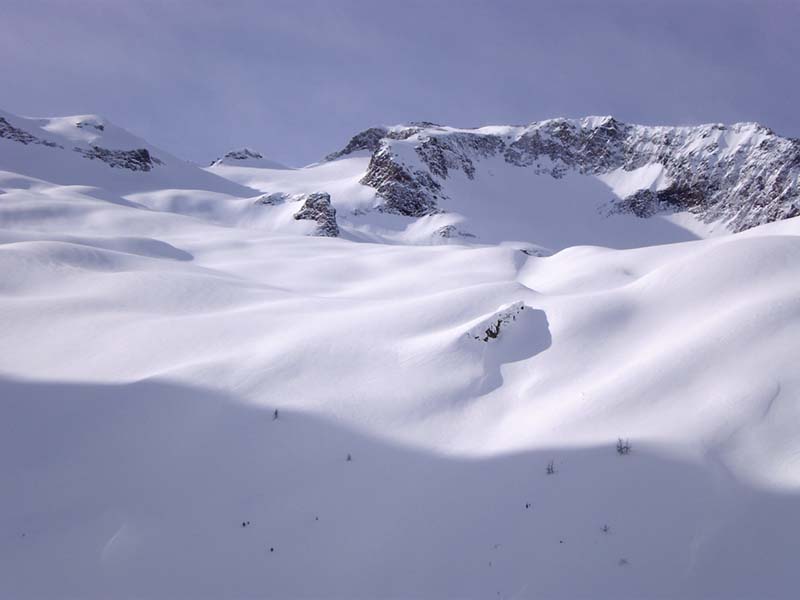 Une énorme plaque est partie du lieu nommé "Jassirette" vers 2400, a balayé les pentes rocheuses et s'est arrêtée dans le vallon. Elle est partie au niveau d'une rupture de pente et a profité de l'absence d'ancrage sur les pentes garnies de zones gelées. La coulée a dû partir la veille. Nombreuses autres coulées un peu partout. La pente finale de montée à la crête de Montvoisin de mande un peu d'attention, mais rien n'a bougé à la descente, le travail du vent ayant été assez modéré.