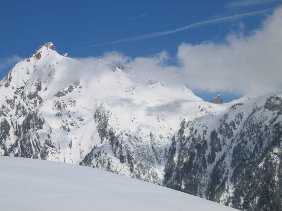 montée à pra spa puis pra plan, puis face sud de la roche à thomas : descente couloir nord-est démarrant à l'est (vers 2360 env). je n'ai pas rejoint le nant du cargot mais ai tiré à droite pour rejoindre la trace de montée vers 1900. mis a part le couloir (env. 40°/150) ce fut en general du tout droit compte tenu de la faible pente et de la grosse neige.
