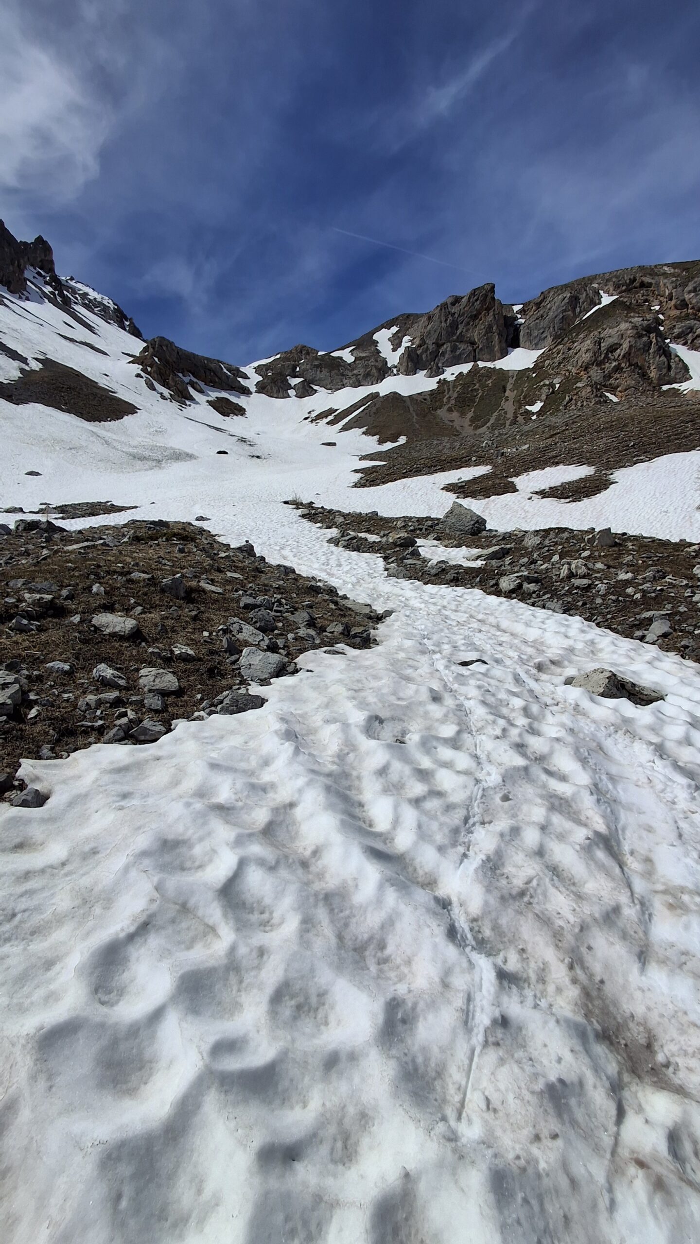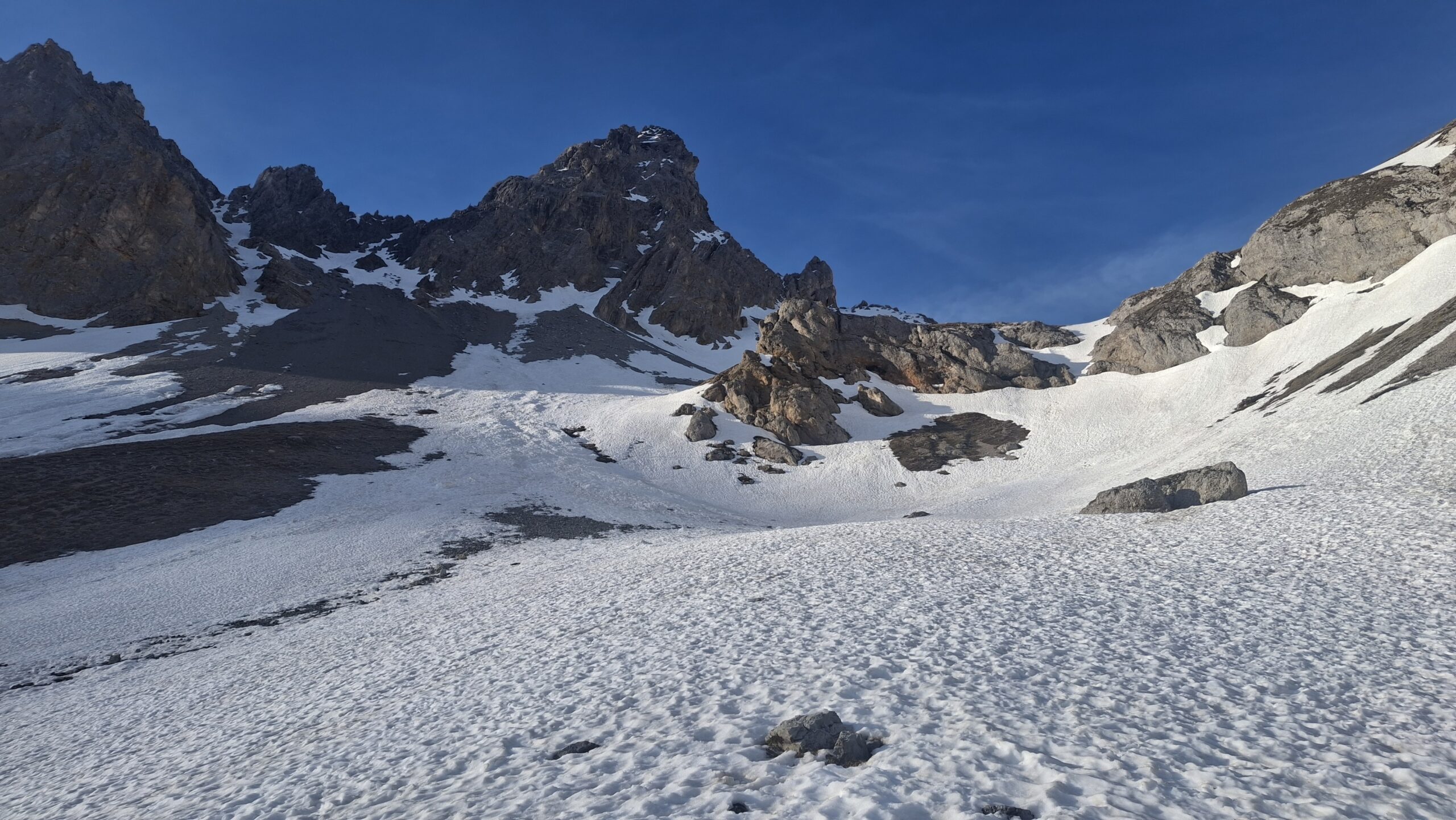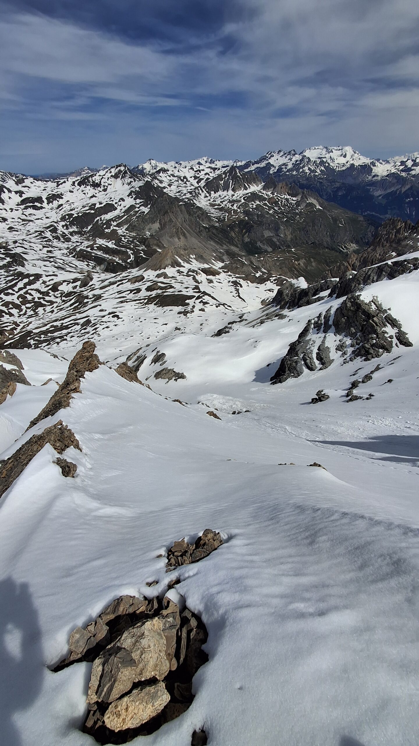 Saisie d’un dernier créneau de ce coté des Cerces avant que la limite d’enneigement continu ne remonte fortement, la faute au premier coup de chaud de ce week end de l’ascension.