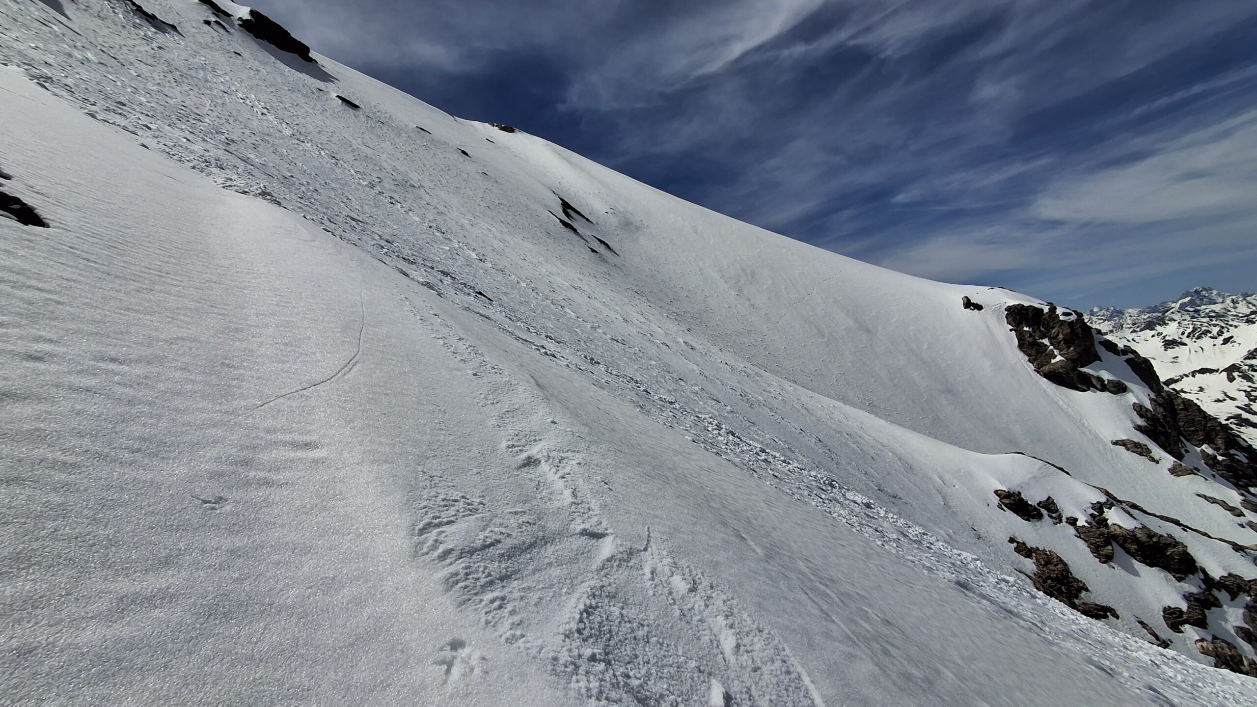 Une belle coulée partie vers 3000 a lustré quekques passages dans la portion plus ouest du versant