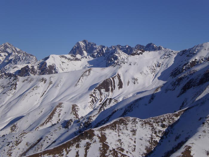 La meilleure neige était celle de roche Courbe, un vrai bonheur. La descente ouest du Laton a été déjà bien visitée, mais on arrive encore à se faire plaisir et les traces ne sont pas dures. Sous 1800, toutes les traces ont basculé au nord et il m'est donc resté le bas tout-à-fait vierge. Neige excellente sur encore 150 m, puis la combe qui mérite son nom... Mais avec la quantité de neige, ça passe fort bien. Rencontré un ami de MLF au sommet du Laton. Le Grun de St-Maurice a été skié, mais on n'arrive pas à voir si les traces partent du sommet (je ne pense pas). Ce secteur est exceptionnellement gâté cette année, ce qui est bien rare.