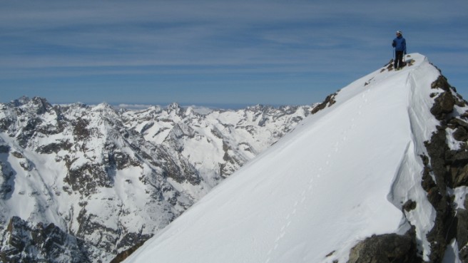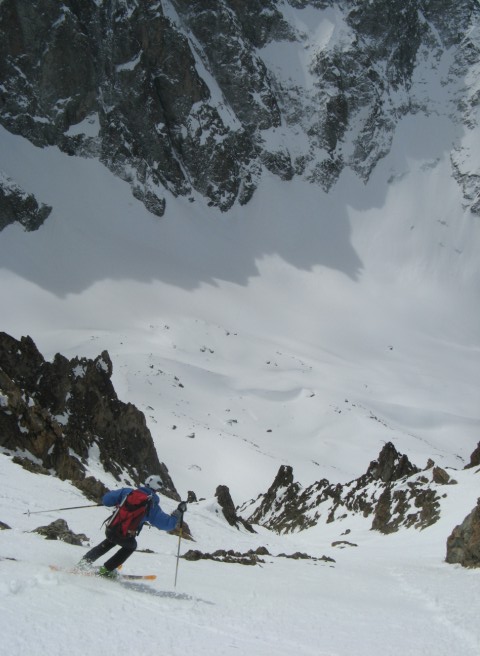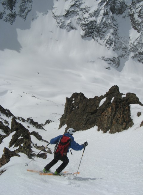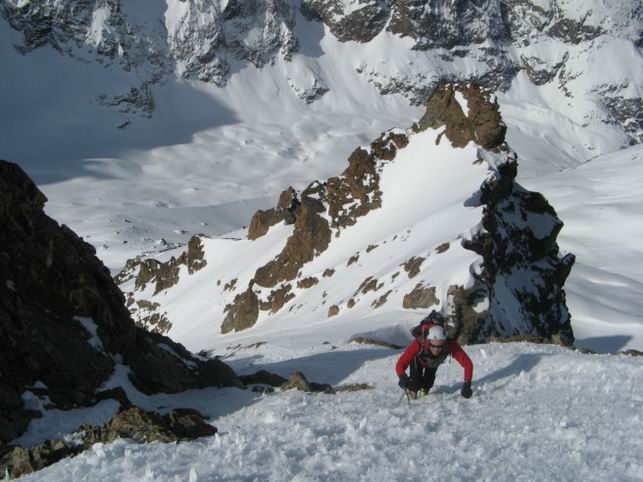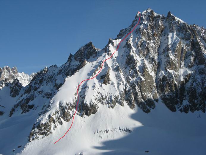 Après un bain de foule à Orpierre, on voulait du grand Oisans sauvage ; raté, la Gapard'in allait sur le glacier de Bonnepierre ! Sortis au Flambeau par la Vera Pervoz il y a 2 ans, je n'ai vu que ce cheminement évident ! Puis après quelques recherches, j'ai vite fait le liens avec une tentative qui a mal tournée par le BLMS. Mercredi au Mayer, cette ligne me nargue ... Je viens donc la visiter et la dédie au célèbre quator Grenoblois qu'on ne présentera plus j'ai cité le BLMS ! Une ligne très esthétique, exposée, raide, comme ils savaient nous les dénicher et nous les partager. 600m de pente, Cot 5.3/E4