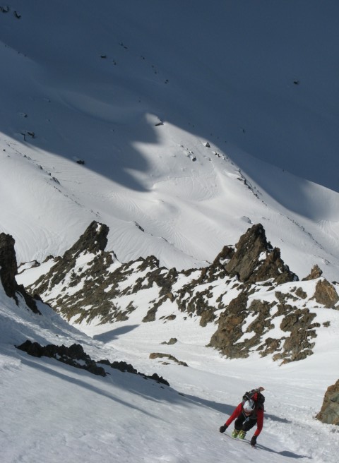 Glacier de Bonne Pierre, puis à 2800 on tourne à gauche avant la station météorologique automatique. Pour le cheminement voir photo. Plusieurs itinéraires sont possibles, + ou - raide.