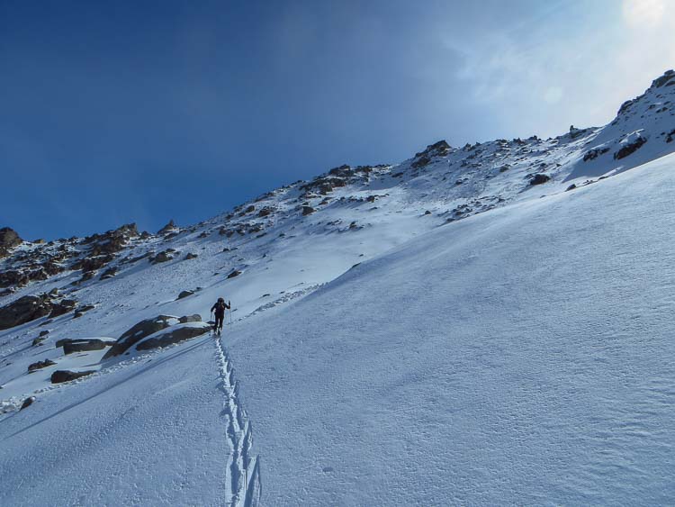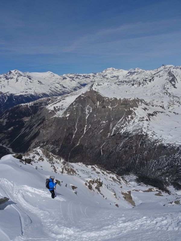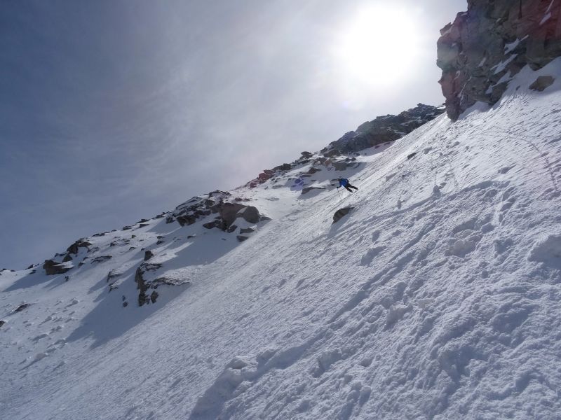 un peu de relief au pied des difficultés du jour (2750 m) et des boules dans la pente intermédiaire
