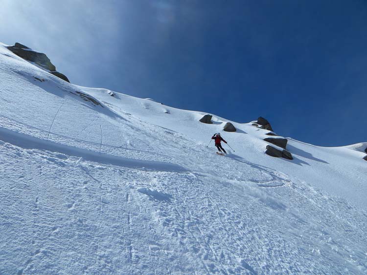 Neige très agréable à skier, hormis la zone sous le couloir avec un peu de relief