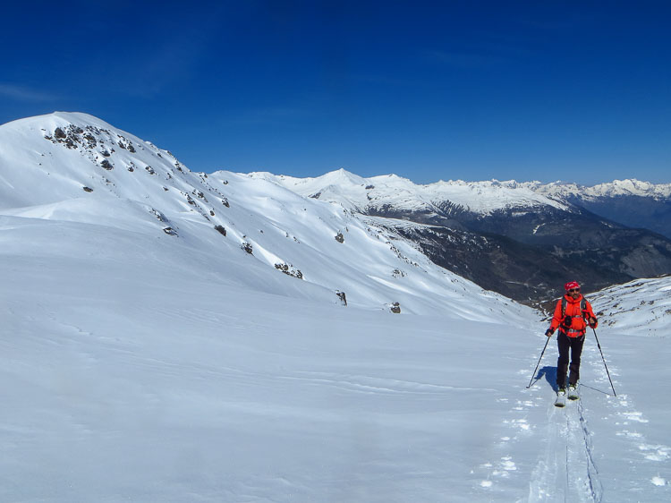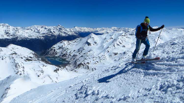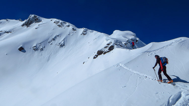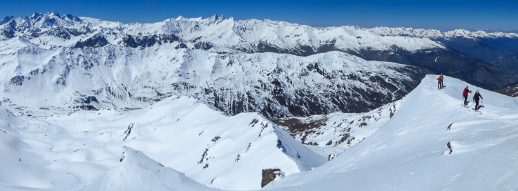 La montée est avalée et le final sur l'arête bien enneigée est des plus panoramiques.