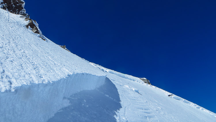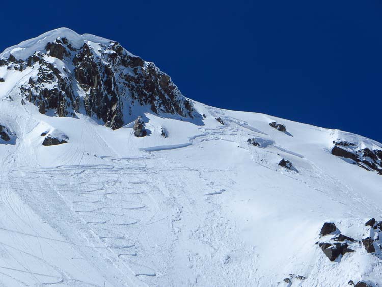pentes NE chargées sous le vent >> départ plaque ds NE Roche Noire sous rochers vers 3000 m - cassure >50-60 cm sur 30 à 50 m