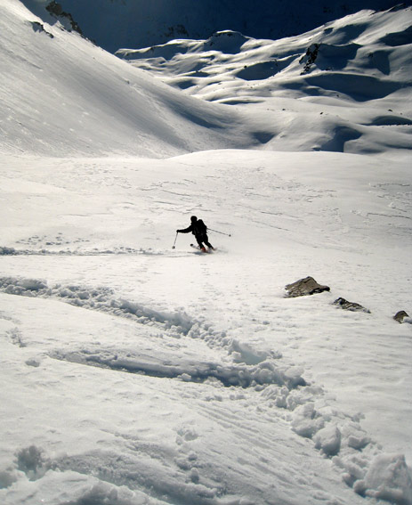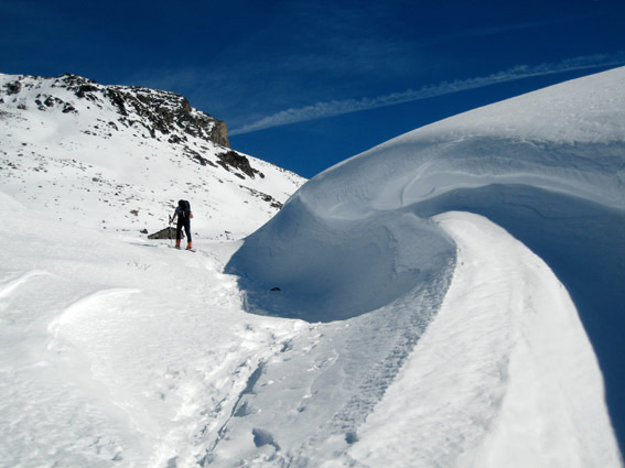 un peu de tout comme dans un hiver anti-cyclonique. à noter des accumulations parfois importantes de neige sans cohésion sous croute fondue jusqu'à 300 m sous la crête. neige sans doute rapportée par vent de nord. en sud raide la neige est en général humide parfois mouillée.