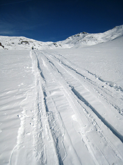 valmeinier->nd des neiges->grandes culées-roche noire-> col de mont-froid-> combe de la vache-> descente par la rive droite du ruisseau sans repasser à nd des neiges. Beaucoup de distances et de montagnes russes augmentant le dénivelé.