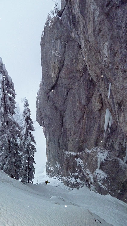 un gros décrochement au terrain dans la sud de Roche Parnal (pour la joie des bouquetin peuvent brouter un peu)