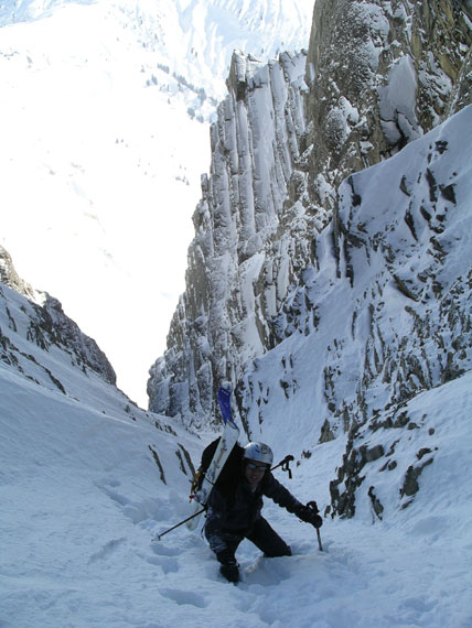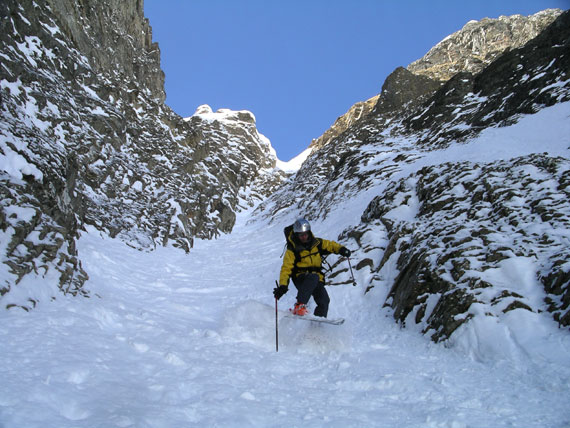 Idem topo.Même si ce couloir ne sort pas pour cause de grosse corniche et ne fait que 300m, il vaut le détour pour son ambiance.