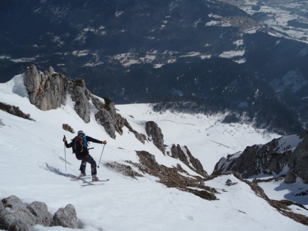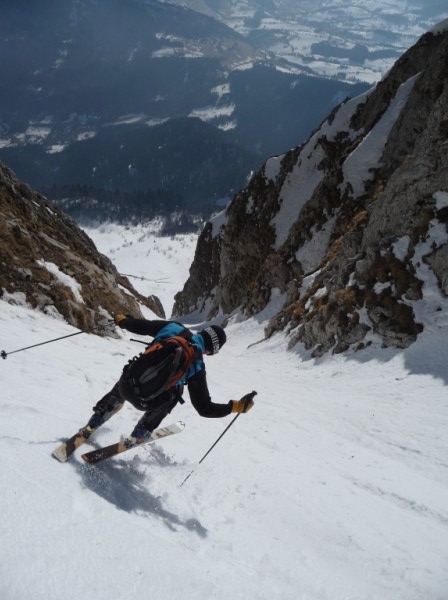 Pour cause de timing sérré (12h30 sur Gre !) et de non décaillage sur d'autres iti, on vient visiter ce coin... D'abord merci à LTA pour la découverte et XAG pour les infos récentes du secteur. Le 1° couloir descendus est le plus étroit, le second est sympa et le moins raide (les deux intégralement skiés, sans déchaussage). le 3° est plus tortueux et plus expo, tout aussi raide que le 1° avec un déchaussage de 10m au milieu et un saut en bas. Les 3 empilés représentent 1530m de D+ pour 750m de couloir technique, bref du très beau Vercors !