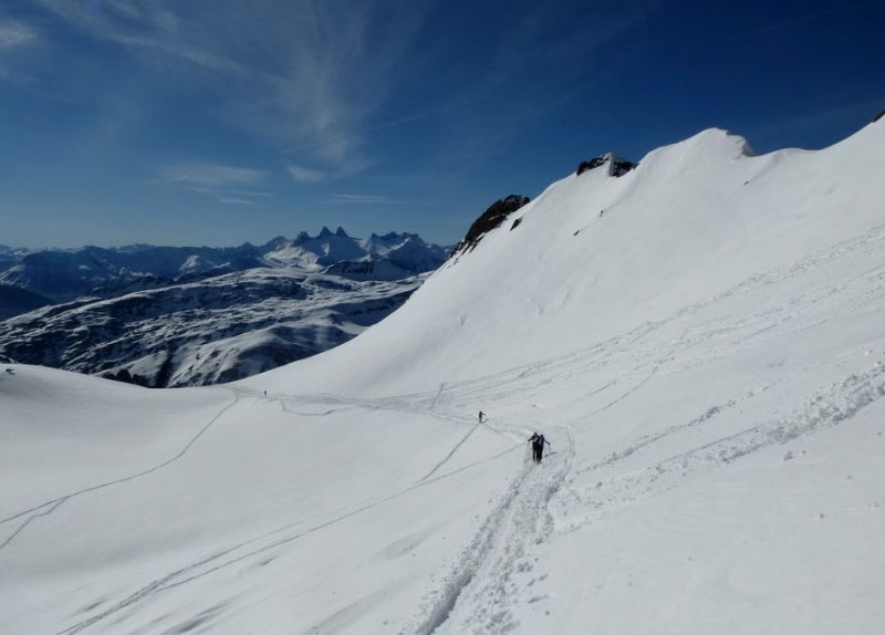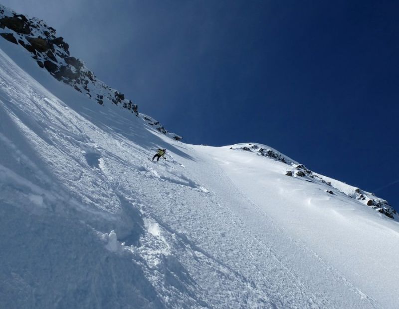 Beaucoup de neige récente (50 à 60 ?) pas encore assez transformée en versants ensoleillés au dessus de 2200. En dessous c'est excellent, plus haut il faut choisir les versants ombragés. Face nord excellente.