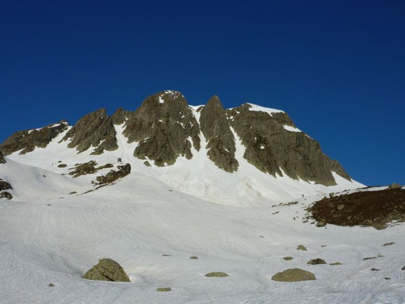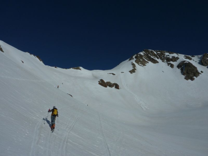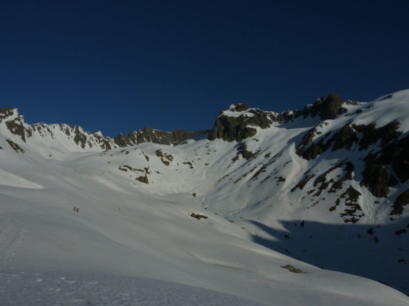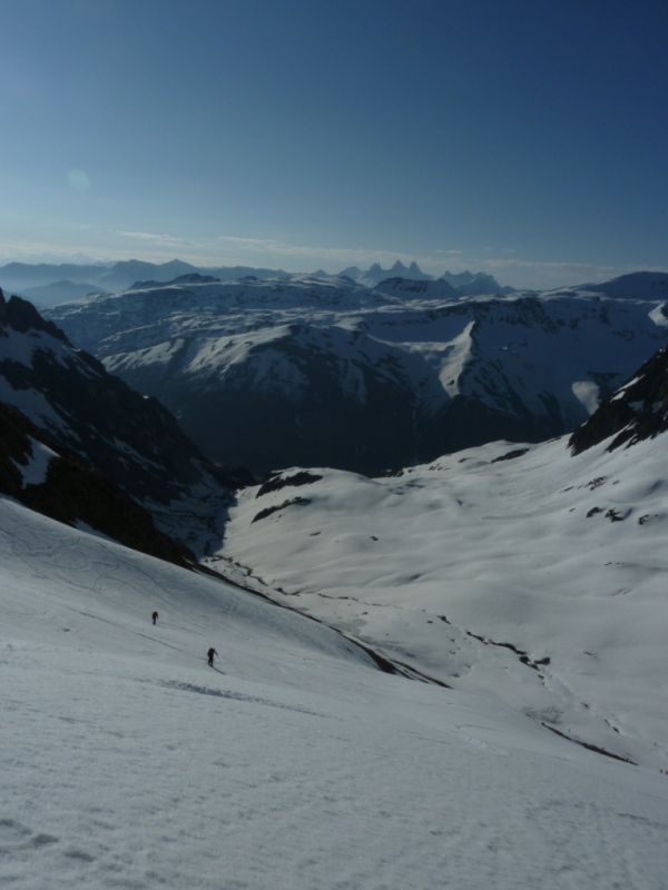 Le regel semblait bon mais à 9H45 en orietation sud c'était déjà bien mou vers 2200. Descente d'un couloir des rochers Pilozian vers 11h, un poil chaud mais bien quand même.