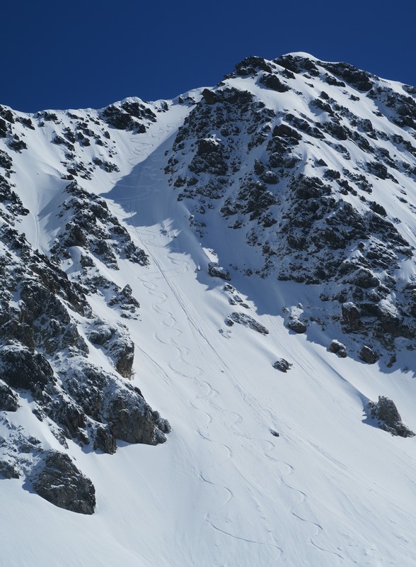 Une version allongée de I.10. Rocher Blanc couloir SW --> Toit face W --> Col de l'Agnelin --> Pilliozan couloir NE. D+/- 2100.