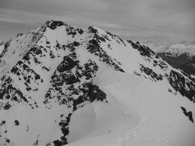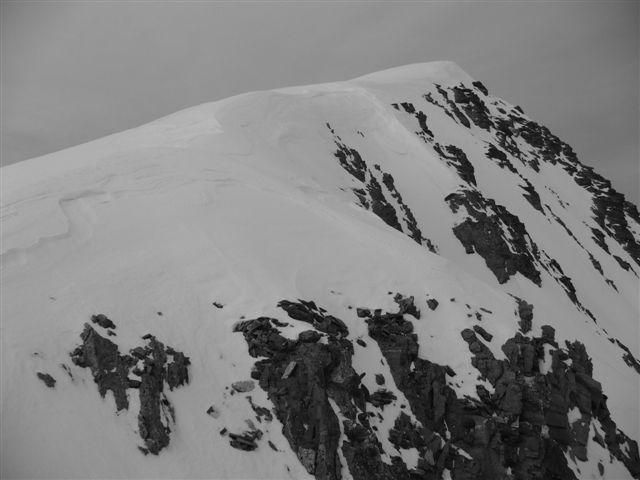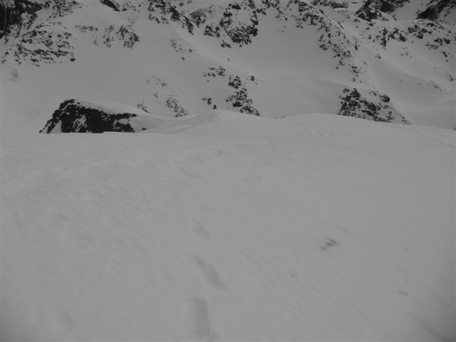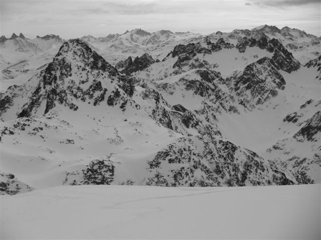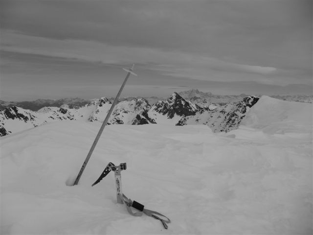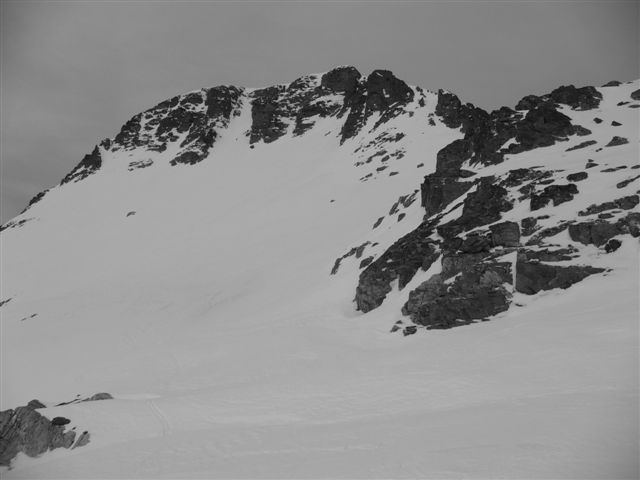 Parti pour faire le couloir S/O du rocher d'arguille, j'ai vite déchanté lorsque je suis arrivé sur la croupe arpette/plagne vaumard : neige béton ne décailant pas. Alors, redescente en crampons dans plagne vaumard et direction couloir S/E en espérant que le soleil veuille bien se montrer . Eh bien non, pas de soleil et le couloir était crouté, seul la croupe sommitale était bonne à skier. Aaaaaaah, MTO ...