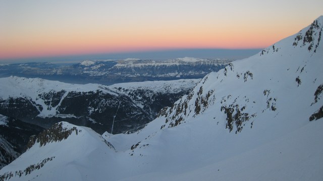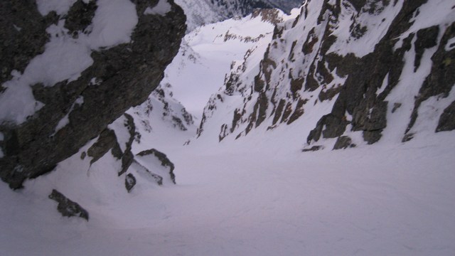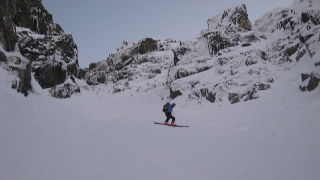 Le couloir est bien rempli, la neige béton permet d'apprécier la pente. Cependant je pense que la cotation 5.1 serait plus justifiée et même malgré la neige dure (ça manque un peu de longueur, mais par contre la pente y est!). Très déçu par la descente sur l'arpette car la neige est bien carton, il faut viser les vernes et les arbres pour faire des beaux virages. Le retour à la voiture est long car la foret n'est pas assez enneigé on déchausse vers 1450m.