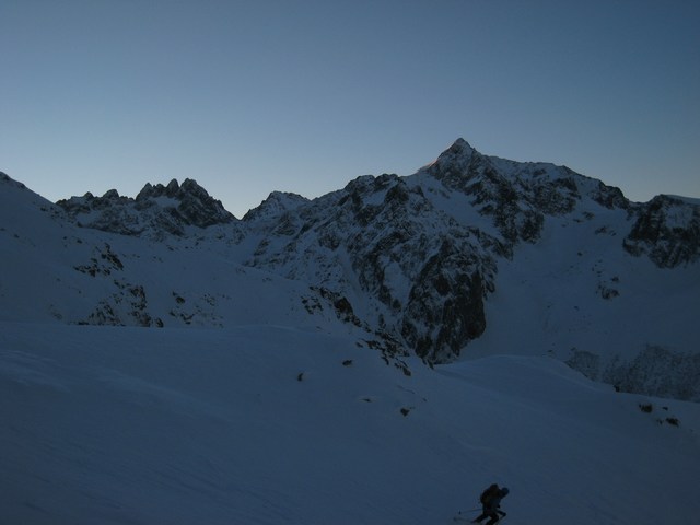 Couloir SW en traversé. Montée par la Plagne Vaumard , sommet ,descente du couloir et retour par l'Arpette.