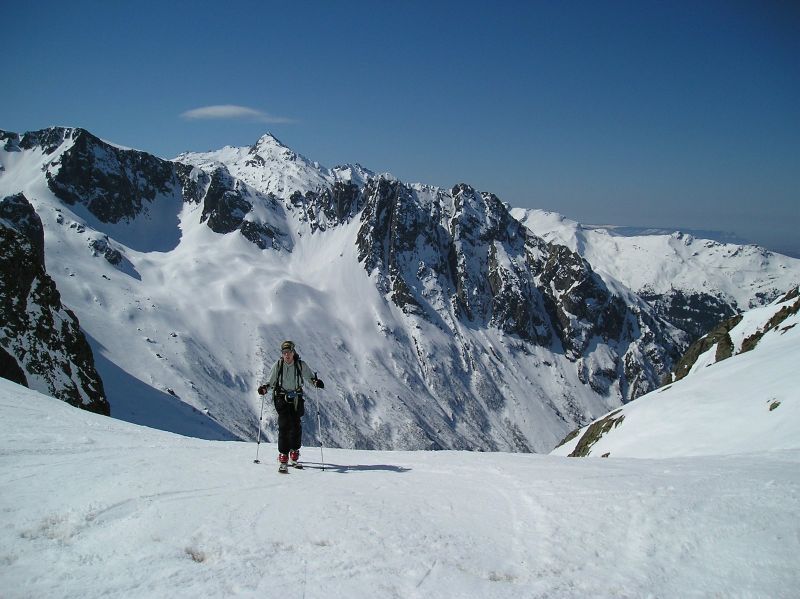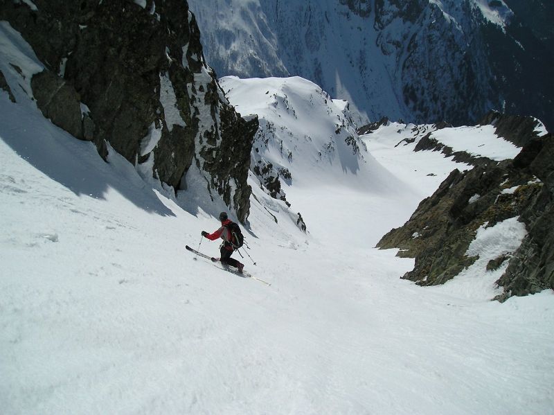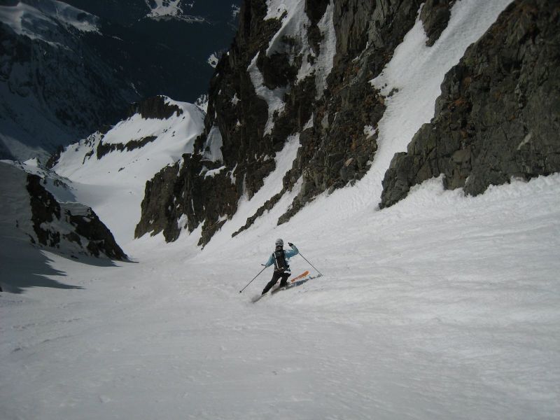 Un joli couloir mais bien court comparé aux précédents Marmes et Tougnes, on reste un peu sur sa faim. De plus, la partie haute du couloir a été bien abîmée par les passages précédents, eh oui on est dans Belledonne, la fréquentation n'a rien à voir avec les massifs précédents. Sinon le sommet est un très beau belvédère.