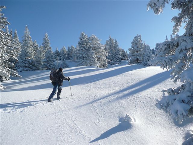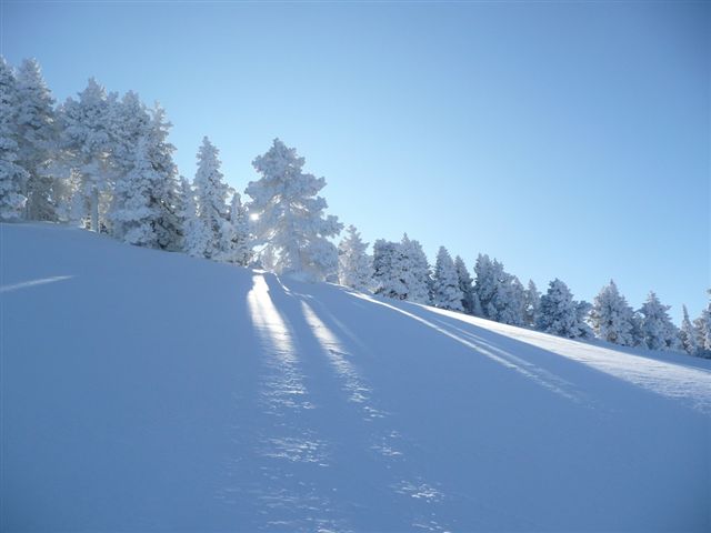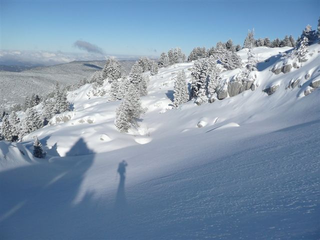 Ce n'est évidement pas de la pente raide mais aujourd'hui cette rando contemplative nous a ravi tous les deux (avec le Pacal). Le froid était sibérien sur la crête au sommet. Le retour est finalement bien skiant même sur la piste de fond, il faut simplement maîtriser le pas de patineur!