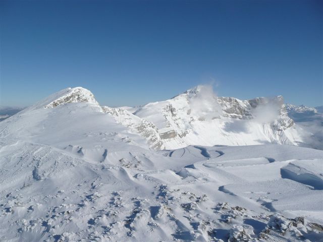 Pas de problème sur l' itinéraire mais le vent à beaucoup transporter la neige sur la crête sommitale et dans la pente terminale.