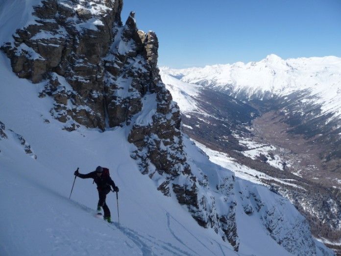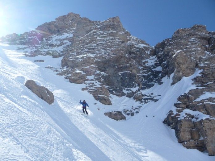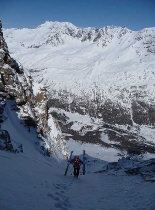 Ben c'était pas gagné, entre le mauvais temps toute la semaine, les chutes de neige succesives, le vent... Enfin un créneau de beau temps et bonne neige ! Repéré l'an dernier, ce ruisseau de l'Arseis avait attiré notre attention par son esthétisme. Puis quand au passage de la brêche (Ca passe !) on débarque sur le glacier de Pignes, quelle récompense ! (possibilité de faire la Pointe des Pignes en A/R, mais contraite horaire et sommet bien soufflé !). Comme dirait Christophe, on se croirait y' a 15 ans, personne et pas de topo, l'aventure quoi... Pente soutenue tout le long mais jamais très raide, 4.2