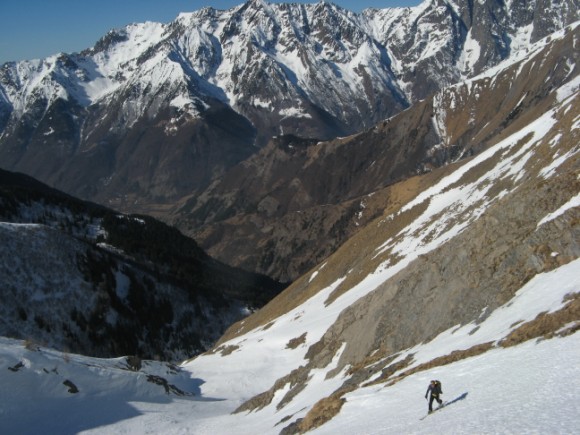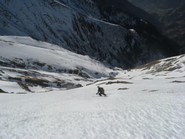 L'approche est mal foutue : expo nord entre P1001 et Confolens : glace, et expo sud entre Confolens et la Cabane des Terrasses : baskets. Sinon de la transfo à tous les étages avec des pénitents à poils longs dans certaines parties (mais bien revenues : miam miam !) et traces de poudre en orientation NW