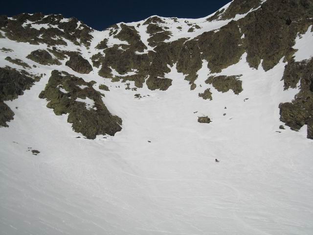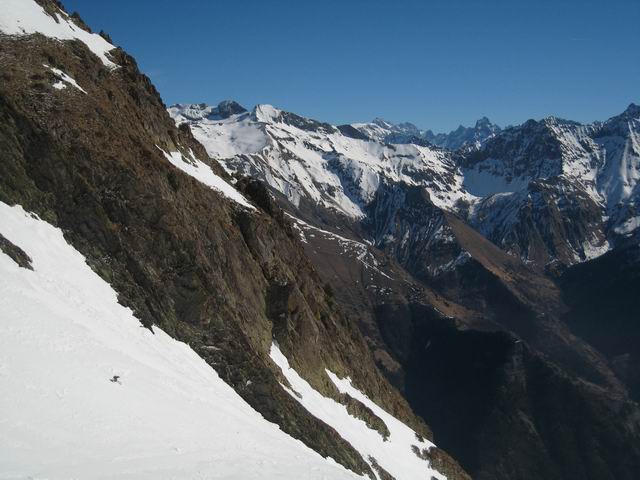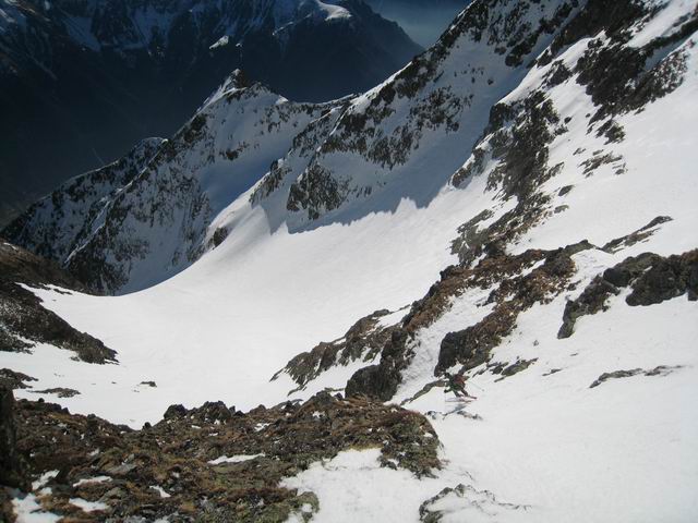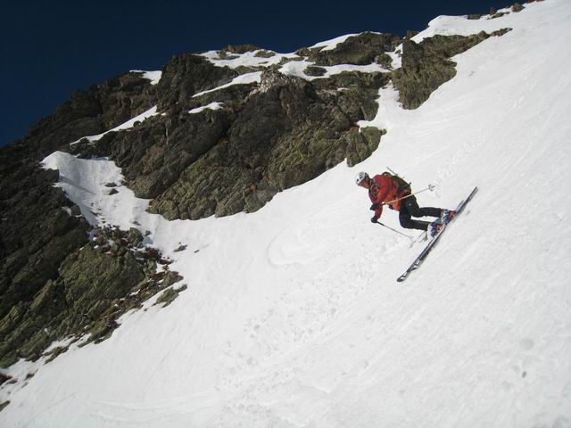 Au dessus de 2000, le regel était correct, avec un fond encore assez dur hormis quelques zones à éviter. En dessous, il ne fallait vraiment pas traîner pour la descente, notamment pour passr le verrou d'accès à combe de Cros, assez raide et dalleux, et dans lequel de nombreuses traces de reptation étaient visibles