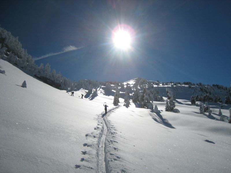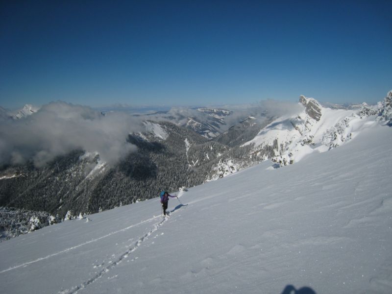 Une première pour nous deux qui ne nous a pas déçue. Pas mal de voitures au départ (c'est relatif vu le peu de places de parking) mais après la bifurcation avec le combe du Prayet, plus de trace récente. Heureusement il y en avait une datant d'avant les dernières chutes qui a duré un moment et un couple qui remontait vers la dent de Crolles avec qui on a pu se relayer. Très bel itinéraire mais que j'imagine guère skiant dans le bas assez verneux par conditions "normales" d'enneigement.