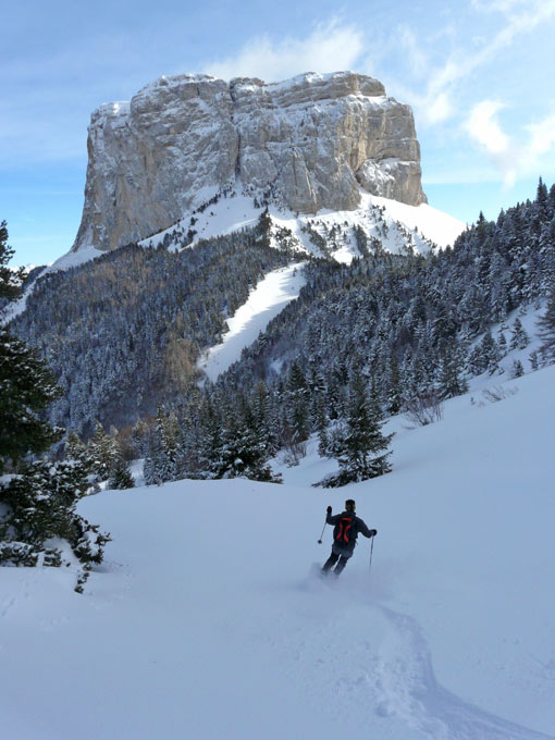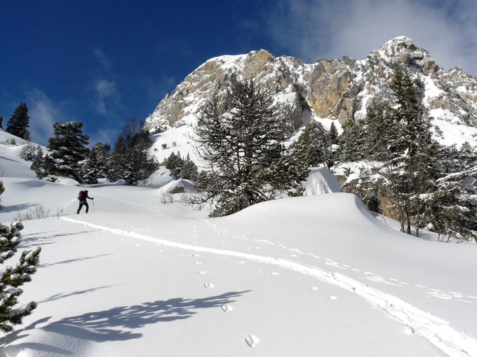 Ski de grande qualité de haut en bas. Ce secteur de la Bathie continue d'accumuler la neige. Le chemin est bien abîmé par le passage d'un 4x4 mais on peut l'éviter par le pré à gauche
