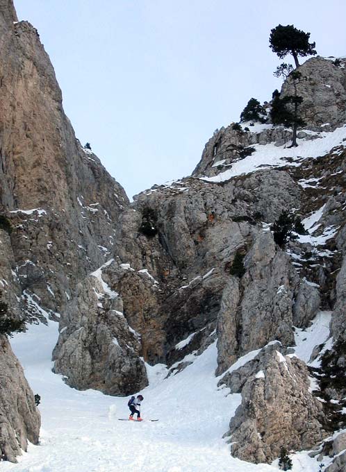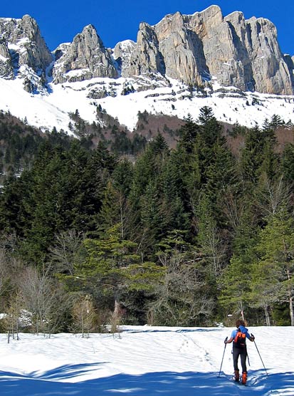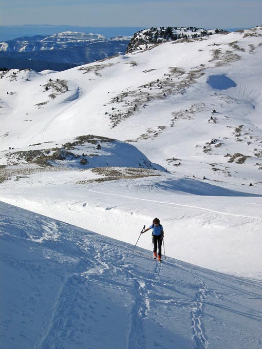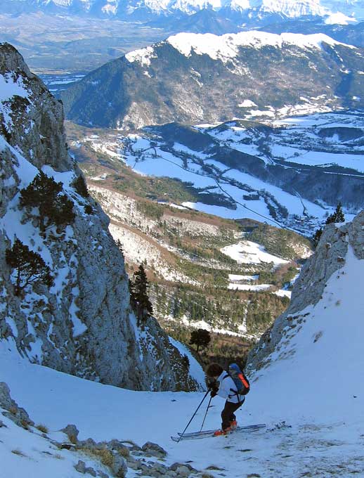 Superbe boucle où on ne recoupe jamais sa trace avec un couloir évident vu du bas mais dont il faut patiemment chercher l'entrée depuis le sommet. Ski un peu besogneux dans le couloir avec une croute glacée tantôt portante tantot cassante. Sous le couloir, une coulée d'avalanche, une coupe de bois puis une piste d'exploitation rive droite donnent une descente parfaite jusqu'à la voiture.