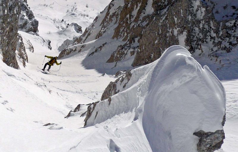 Couloir NC 0 Poudte tassée , qui prend un peu les skis