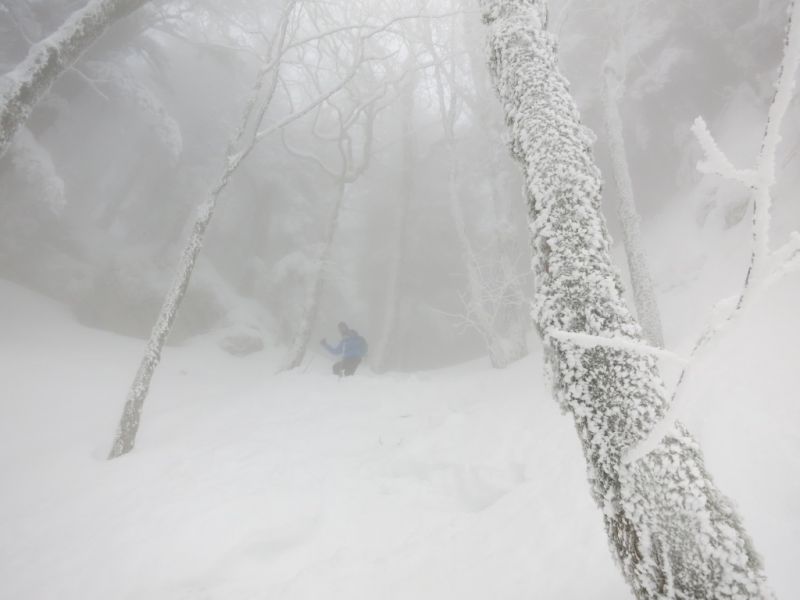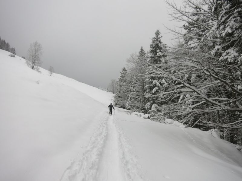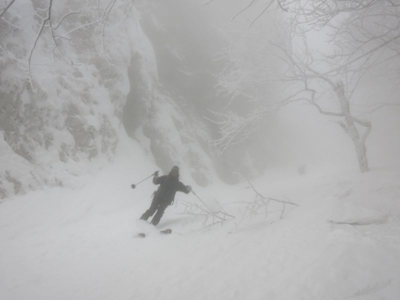 Merci à David Lavie pour l'idée de cette ballade, bardés de GPS, chacun le sien, trouver la petite fleche sur fond blanc pour l'entree du couloir fut en soi un objectif partagé et commun...C'est un vrai petit couloir avec peu d'arbres si ce n'est au départ et à l'arrivée.(voir remarque nivologie pour le couloir). A vos spatules et bons skis!