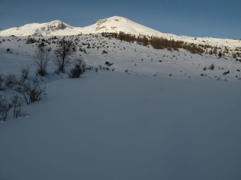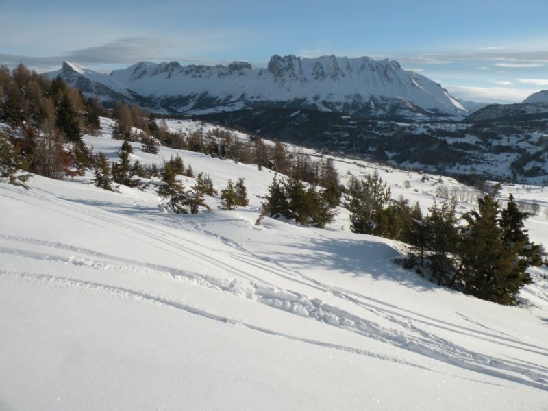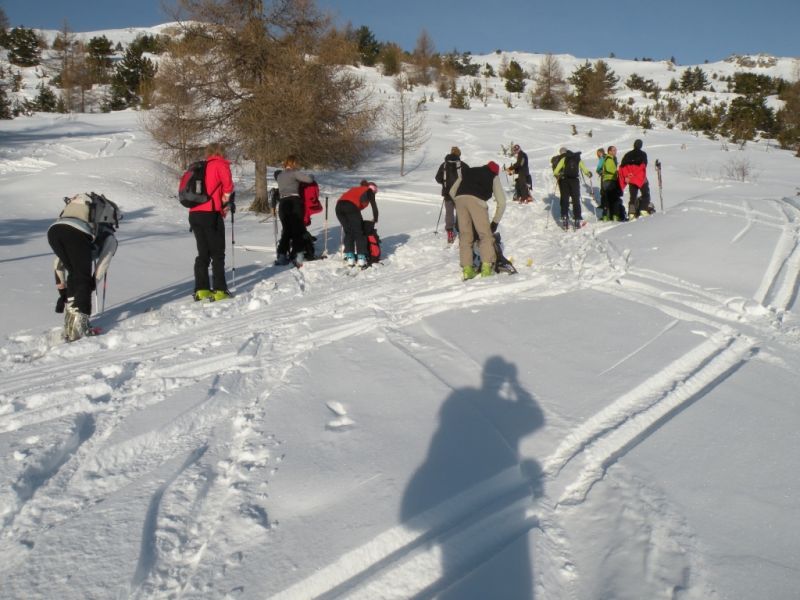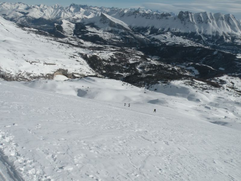 Petite sortie avec skieurs du CAF local, on est bien nombreux, mais on sera le seul groupe. C'est cool de monter à un rythme tranquille. Départ sous le soleil, mais nous ne trainons pas au sommet car les nuages arrivent de l'ouest. Nous ferons les 2/3 de la descente avec une visibilité correcte, ensuite jour blanc. La descente est plutôt bonne, je m'attendais à pire. Enfin dans la bas ça touche un peu, mais bon dans le dévoluy c'est rare quand on touche pas vers le bas. Les classiques du coin ont quasiment toutes étaient tracées.