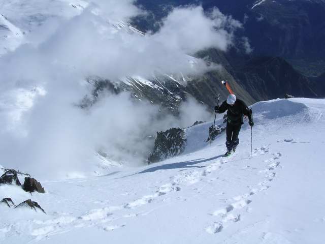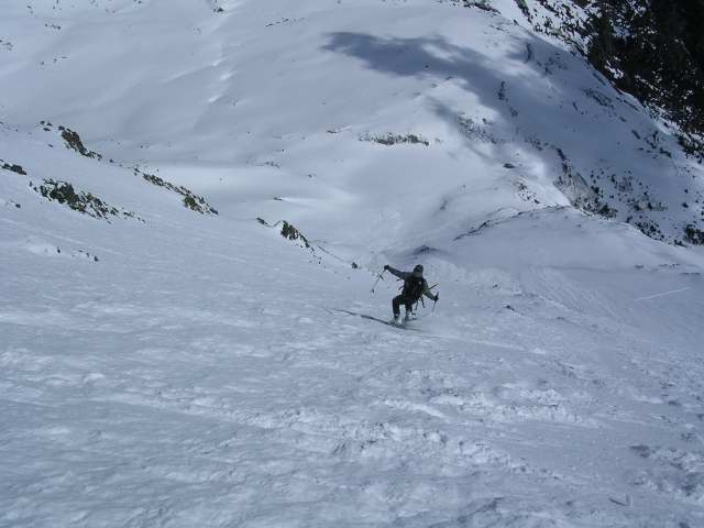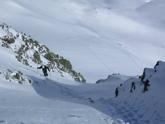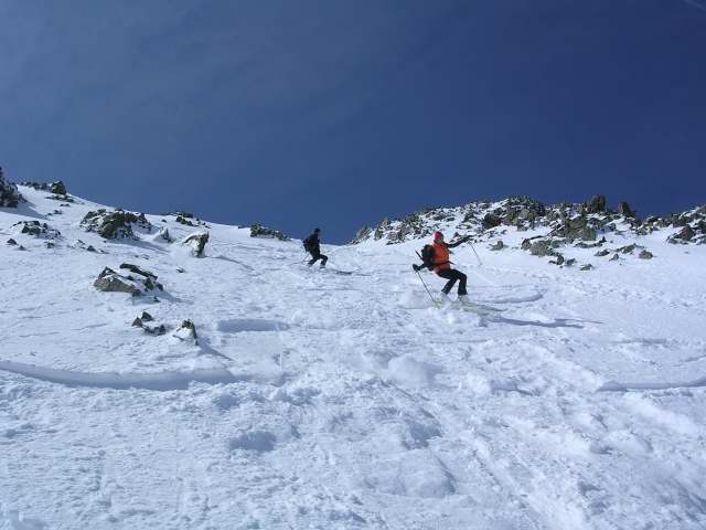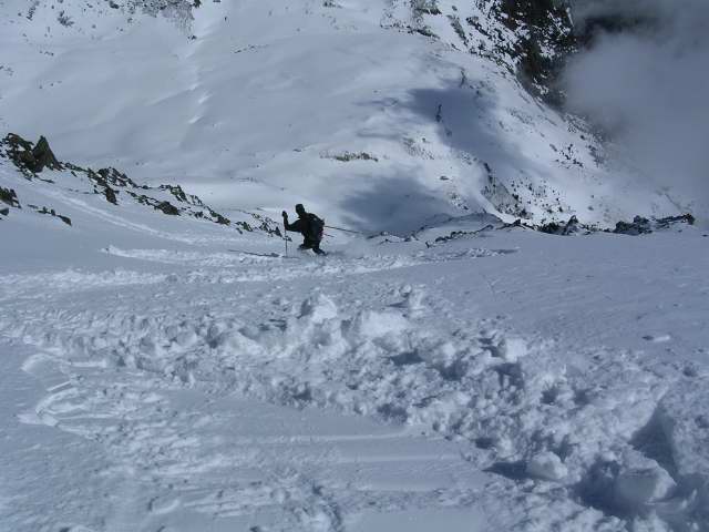 Nous avons profité des traces de montée de 3 skieurs qui nous ont précédé d'une heure.Belle ambiance dans cette face bien ouverte,poudre à tous les étages. ça fait plaisir de cocher encore une course du vieux SKI ALPINISME 22 ans aprés l'avoir acheté.