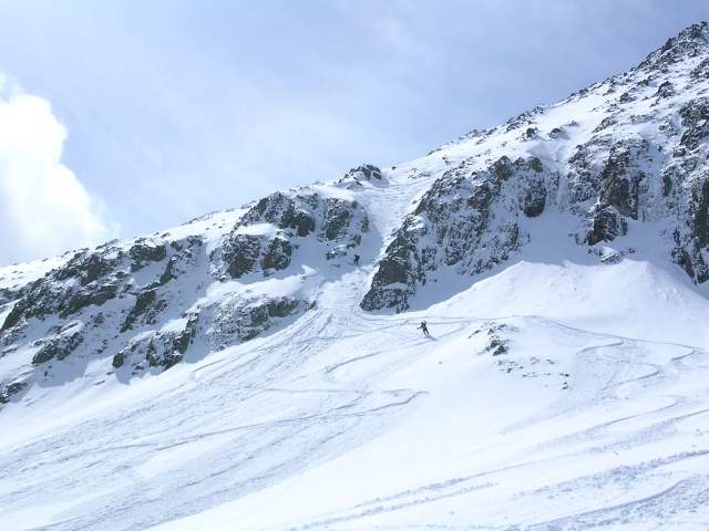 Peu de cohésion entre la neige tombée la nuit dernière (quelques cm)et la couche dure.Quelques coulées provoquées par notre descente.