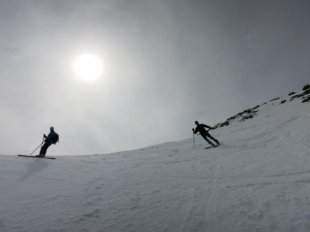 nous somme allés voir B3 et B3.1 (cote gauche de la face et centre de la face), la qualite mediocre de la neige , trop mou et dangereux, nous a conduit à faire B3.2 (couloir sur la droite de la face)